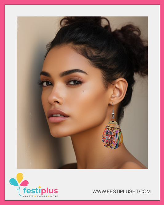 Haitian Tamboo Teardrop Earrings – Cultural Drum Art Statement Jewelry